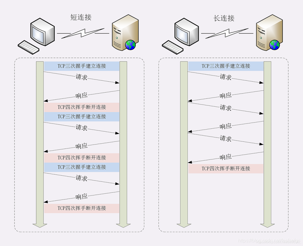 - 早期的 HTTP 协议,如 HTTP0.9 之前也被称为是 “无连接” 的协议。不会与服务器保持长期的连接状态,所以也称为短连接,短连接每一次的请求都需要重新建立 TCP 连接,有 10 个请求就需要建立 10 次 TCP 连接,这个效率,可想而知是非常低的